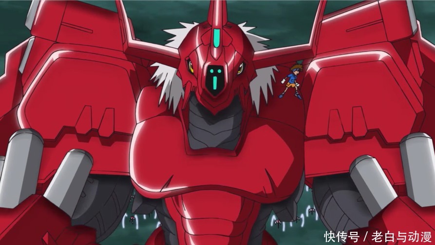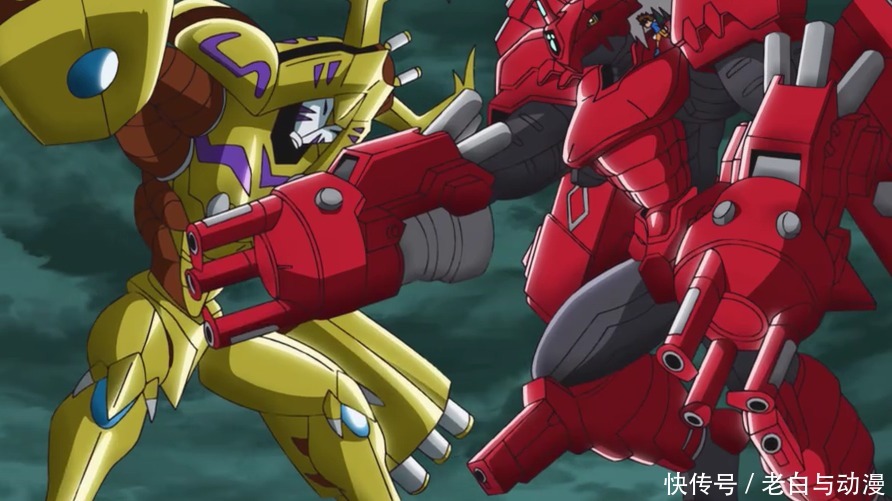 从之前的战斗来看,装甲而淬炼的金属暴龙可以对抗普通的终极体,更不用说完整的身体了,但是因为剧情需要,这一集的金属暴龙已经被打了,通电后进化成了电暴龙兽!