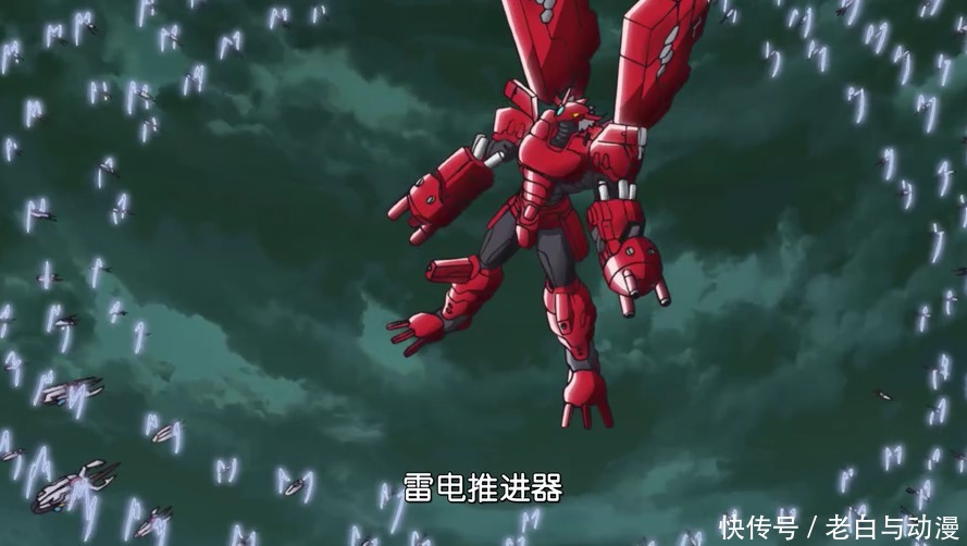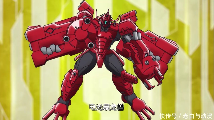 电暴龙的全身是红色,手臂,膝盖和背部的翅膀都是武器,更喜欢远程射击。之前看36集标题的时候还以为是电动霸王龙出现在狙击空间站,结果不是这样的。