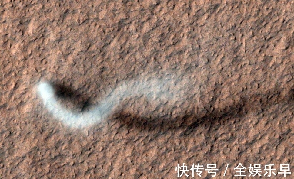 图:一条蛇状的灰尘在火星上调皮的蜿蜒前进。