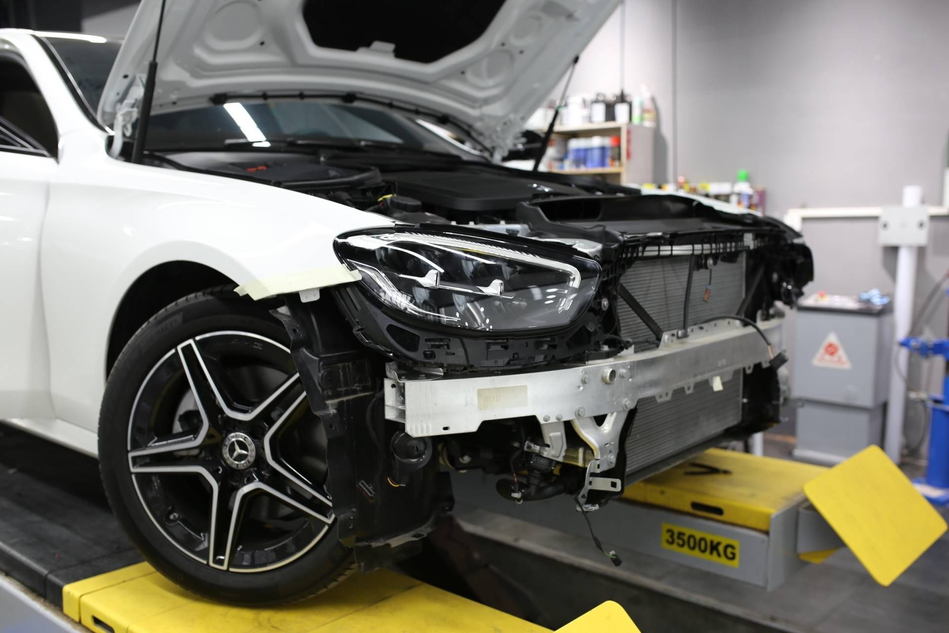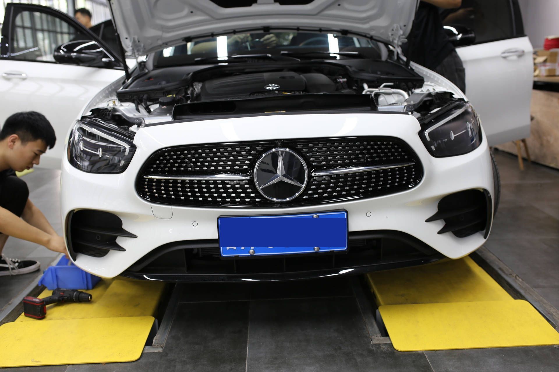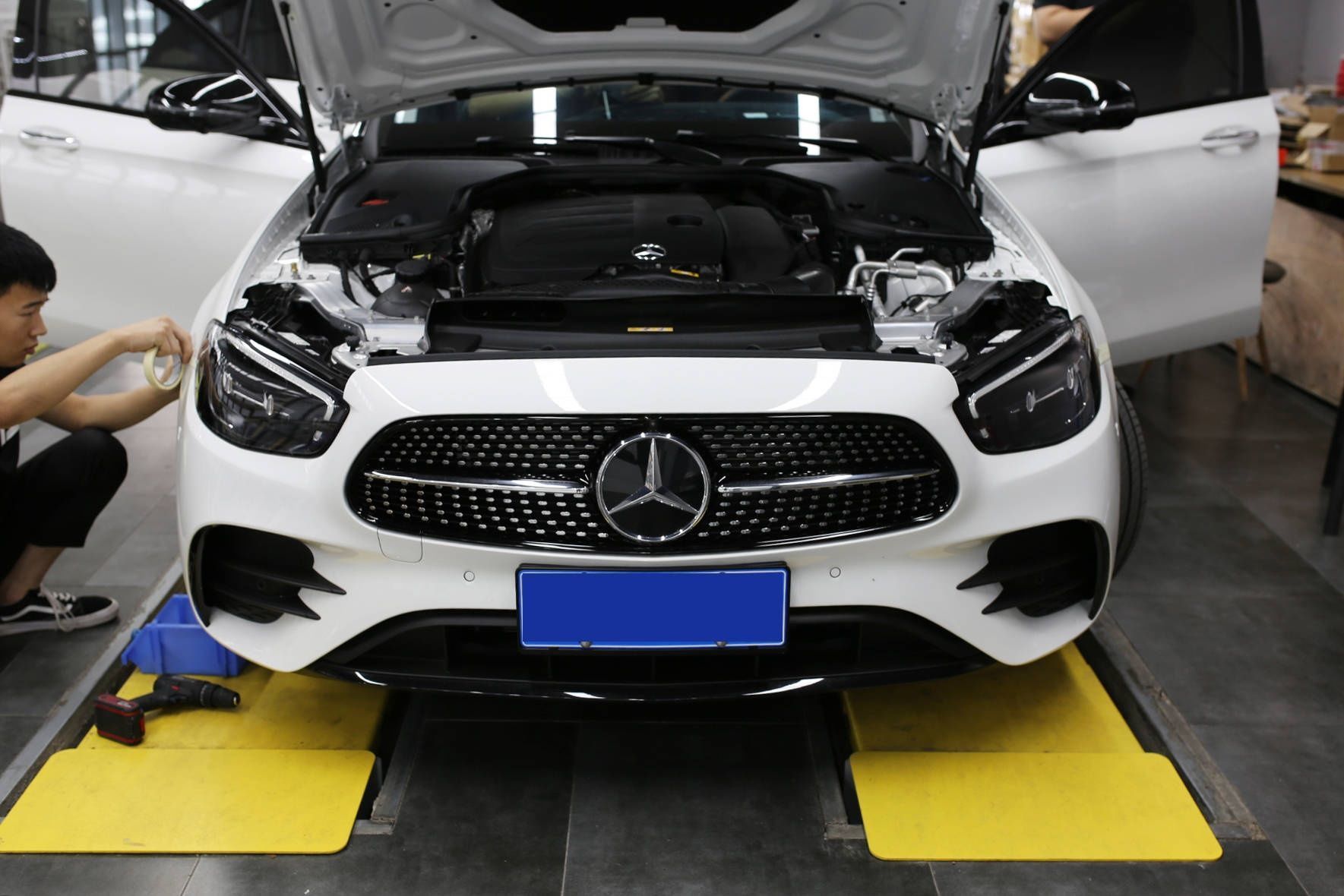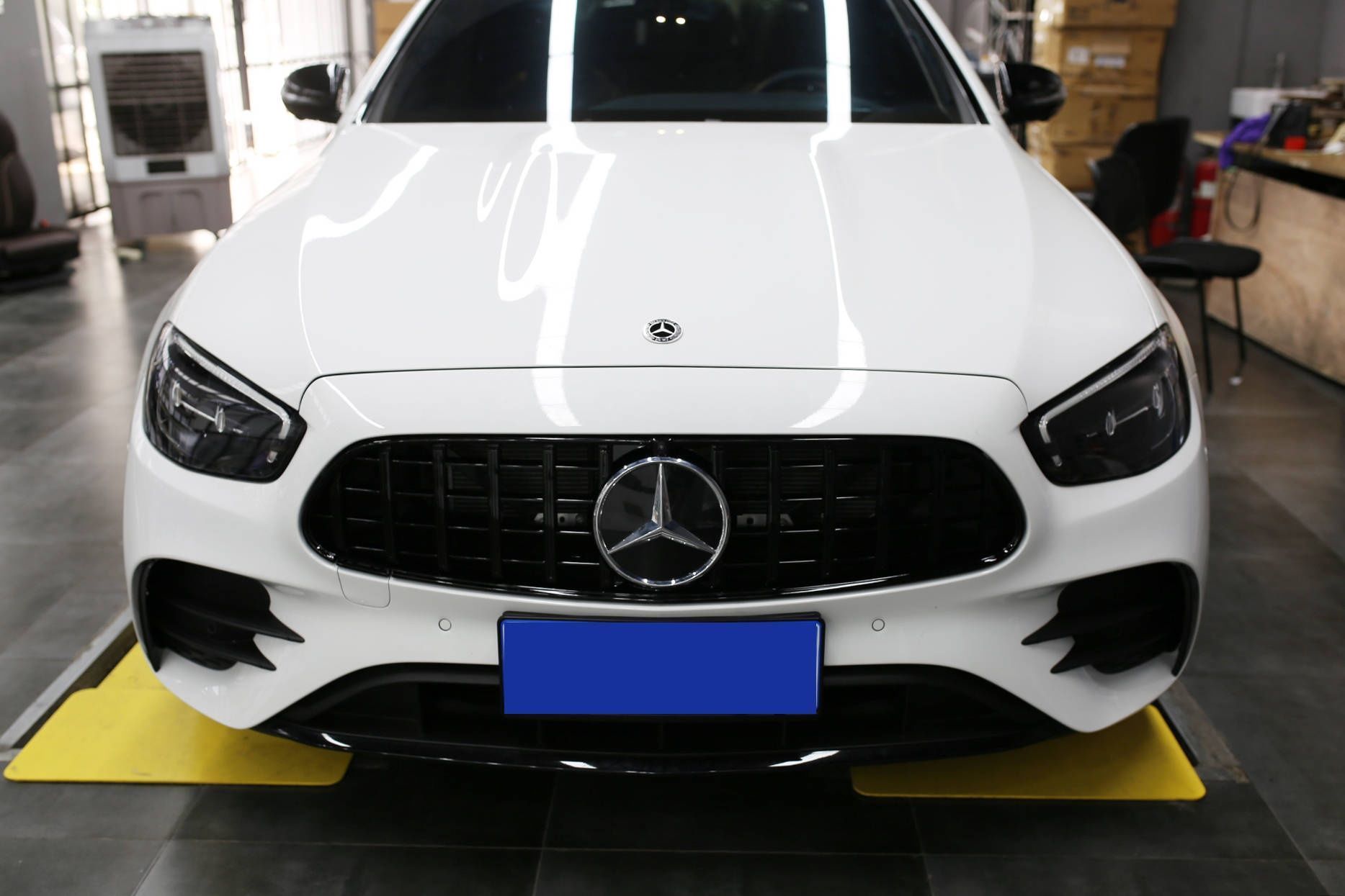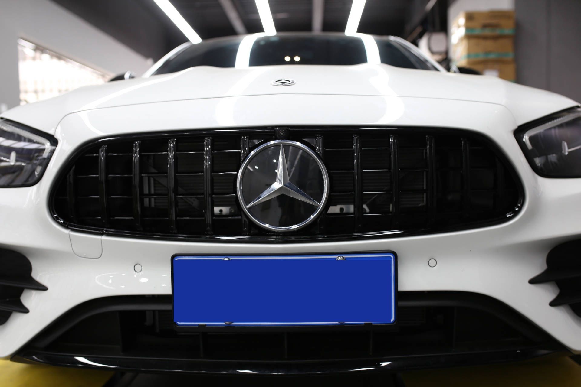 今天的改装主角是一部 奔驰E260,改装项目包括:隐形车衣+电光金属灰改色膜+发光涡轮出风口+旋转高音+AMG亮黑中网+卡钳喷漆+屏幕灯条+香氛负离子。