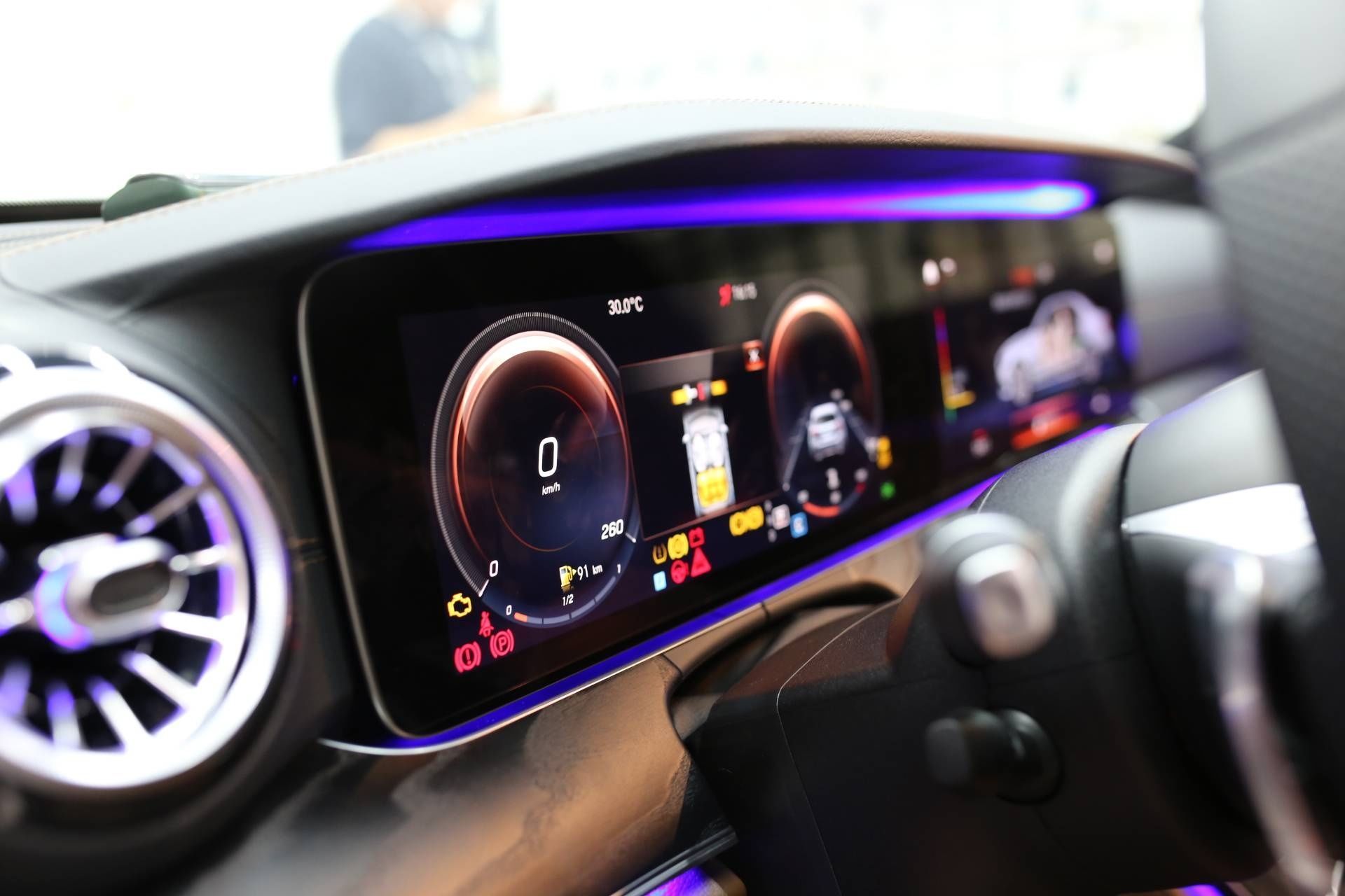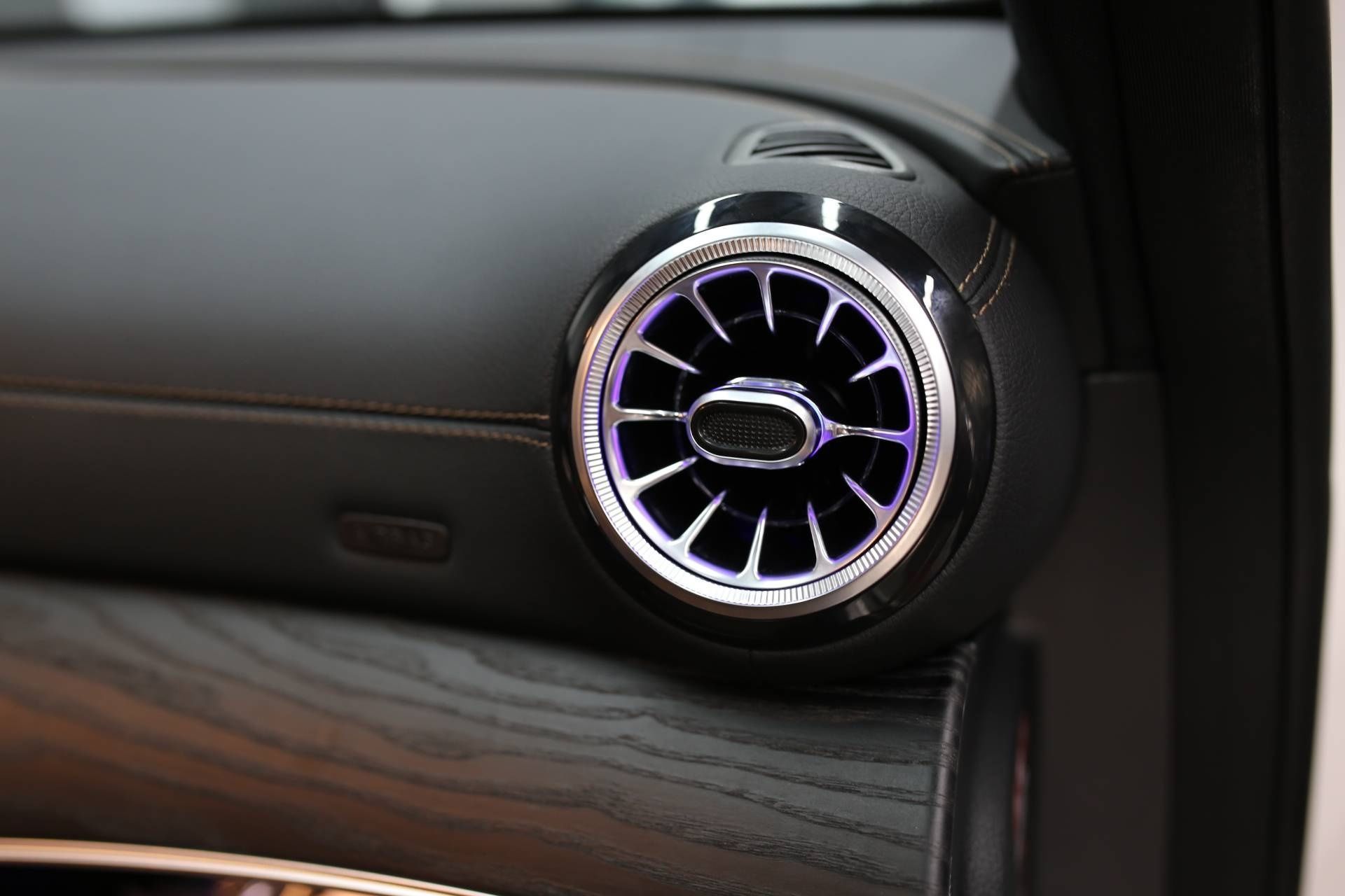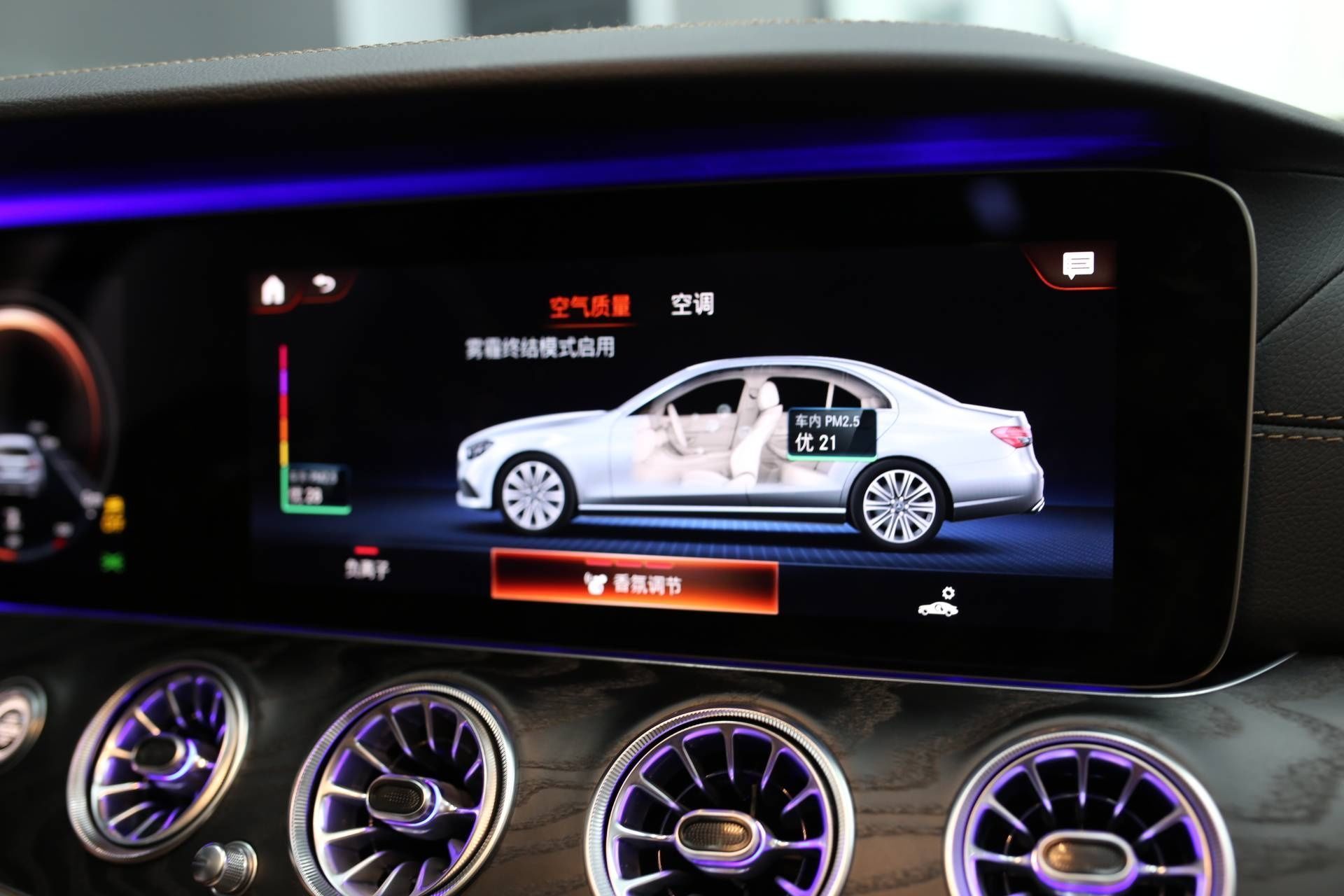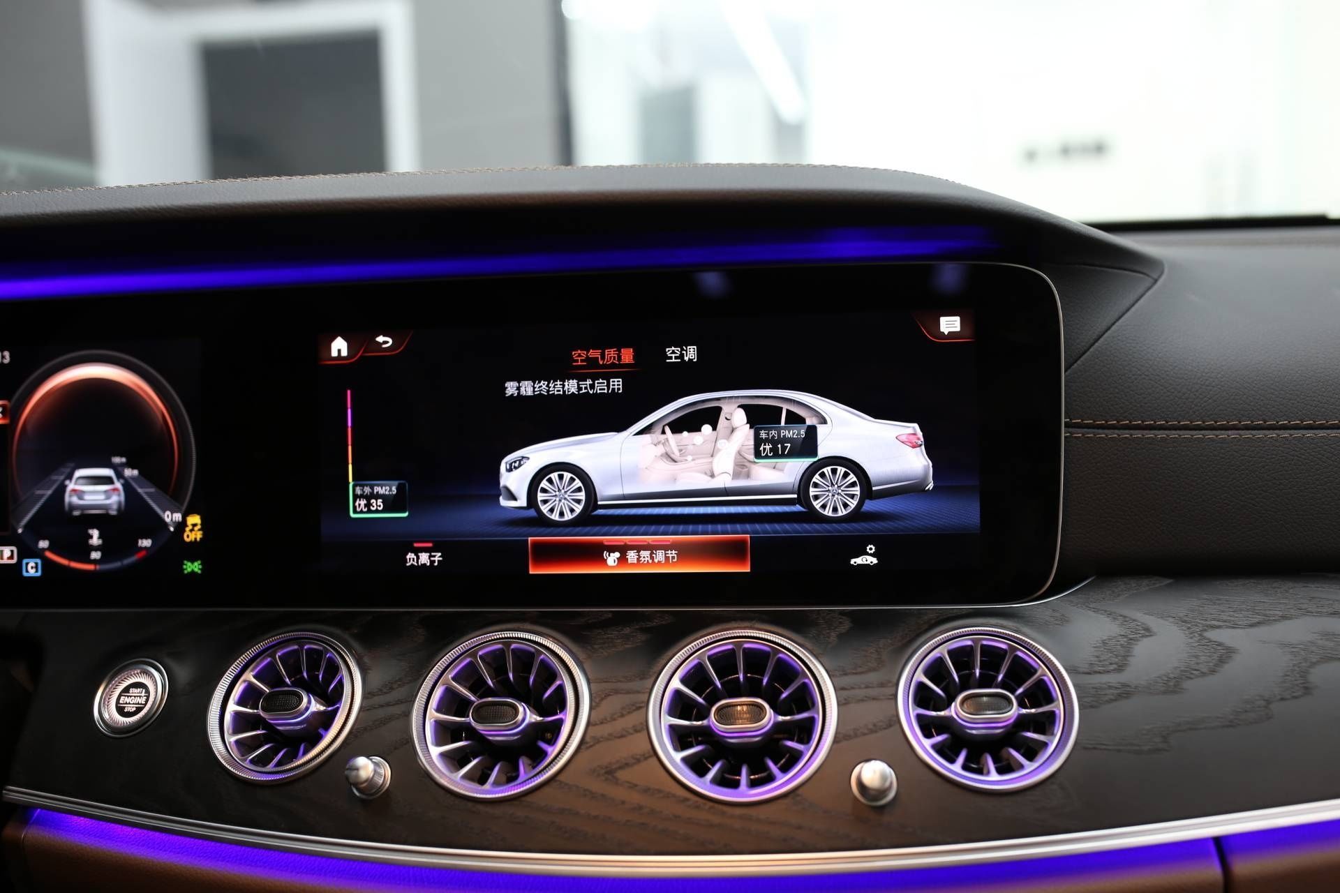 换了AMG亮黑中网之后前脸更好看了。车内增加与氛围灯颜色同步变化的发光涡轮出风口、旋转高音和发光盖板,再加上奔驰E的标志连体大屏氛围灯,车内气氛感直线上升。