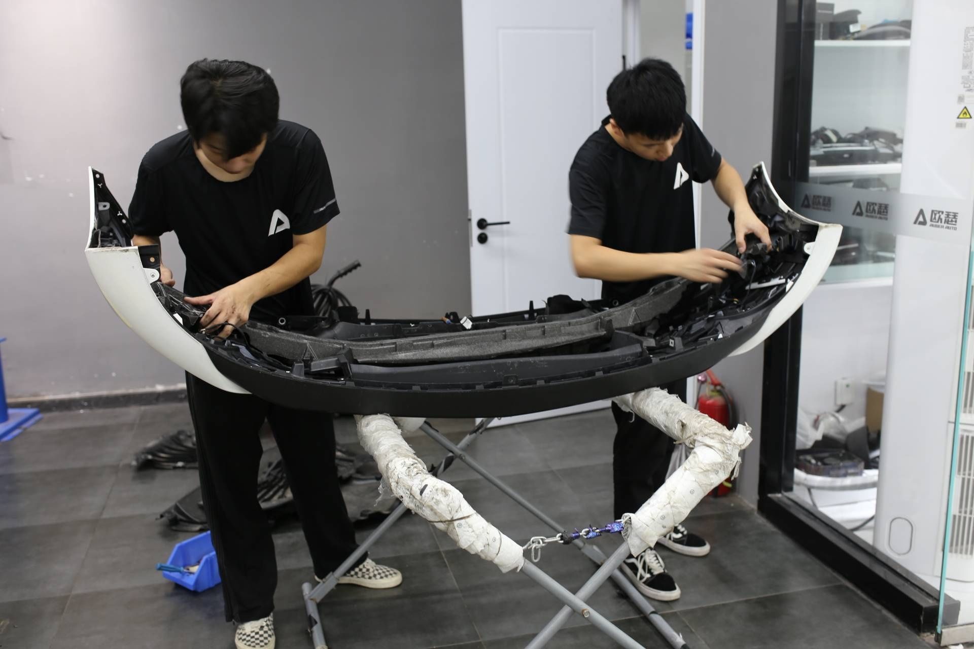 车放在这先把改装件装完,然后再装贴车衣,最后贴改色。